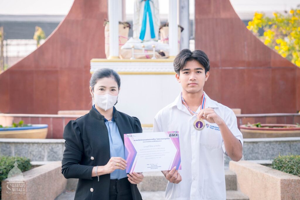 โรงเรียนสารสาสน์วิเทศคลองหลวง ขอแสดงความยินดีกับนายภูมิใจไทย นาคแป้น นักเรียนชั้นมัธยมศึกษาที่ได้สร้างชื่อเสียงให้กับโรงเรียน ด้วยการคว้ารางวัลชนะเลิศ การแข่งขันจักรยานบีเอ็มเอ็กซ์ ชิงแชมป์ประเทศไทย ประจำปี 2568 ชิงถ้วยพระราชทาน สมเด็จพระกนิษฐาธิราชเจ้า กรมสมเด็จพระเทพรัตนราชสุดา ฯ สยามบรมราชกุมารี ประเภทยุวชนอายุ 15 – 16 ปี ชาย BMX Racing