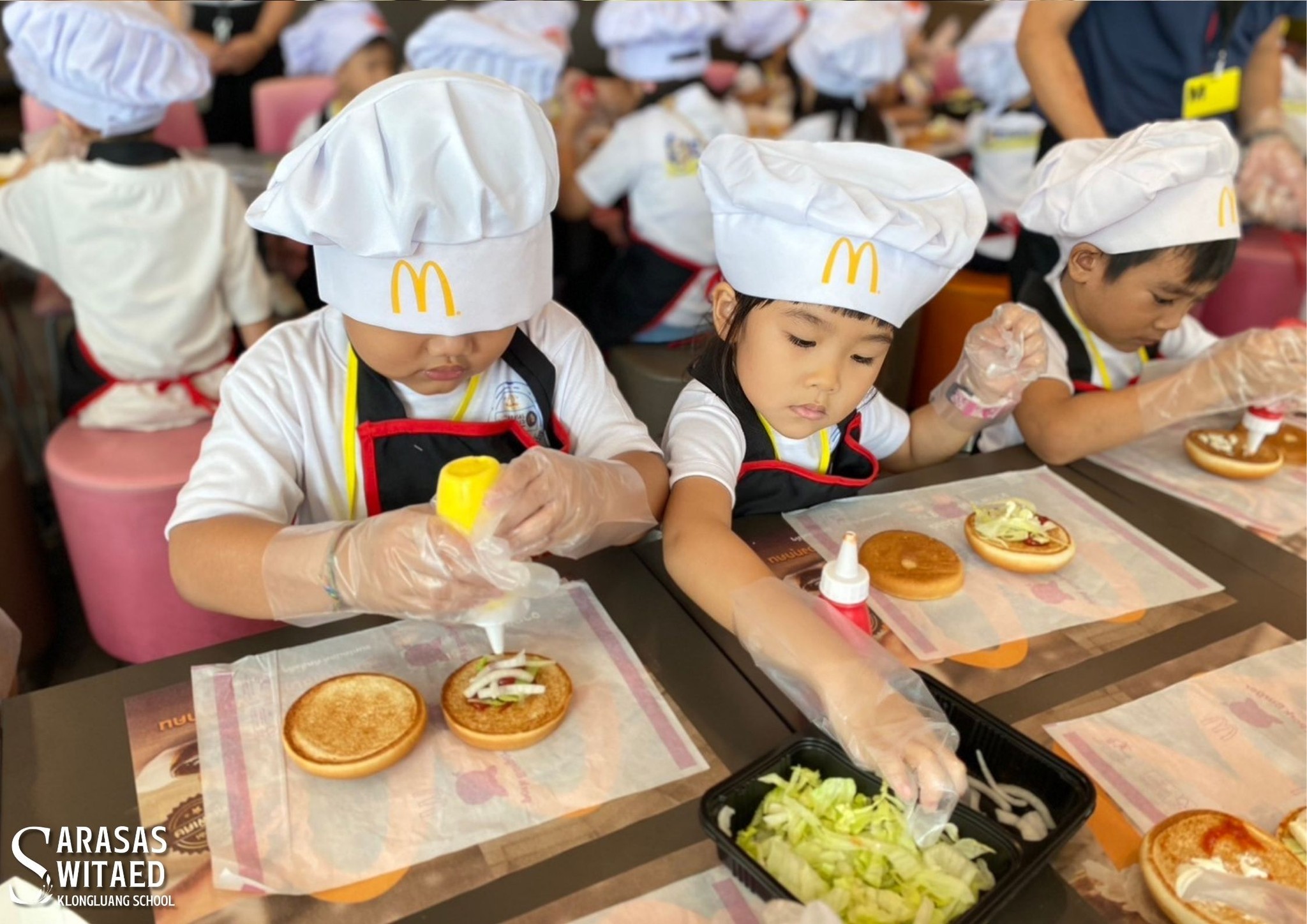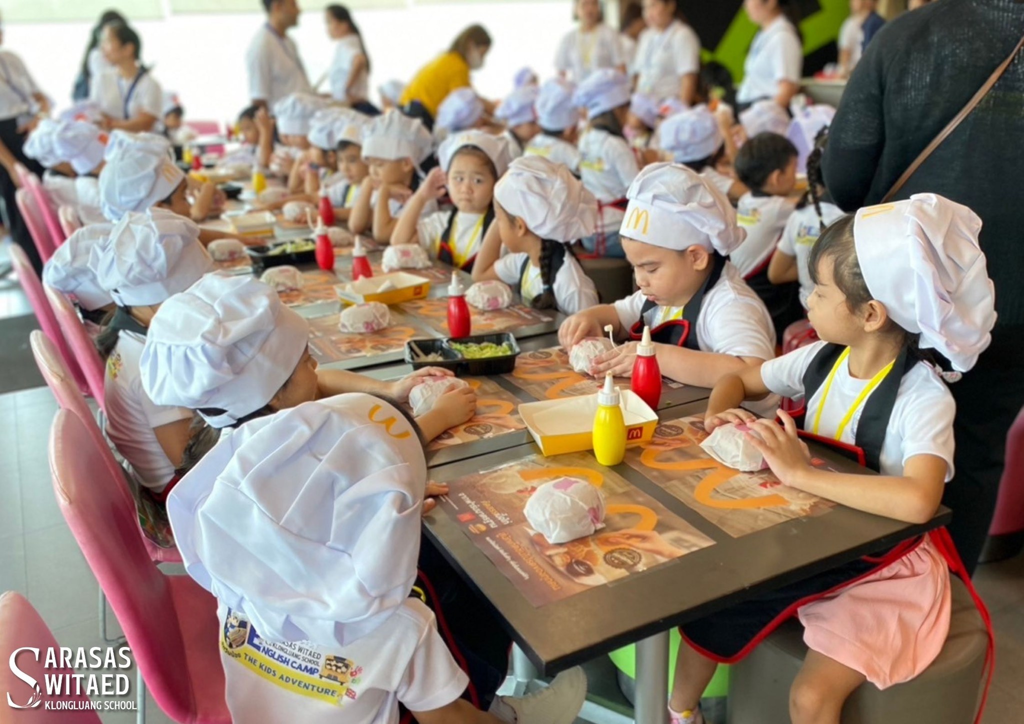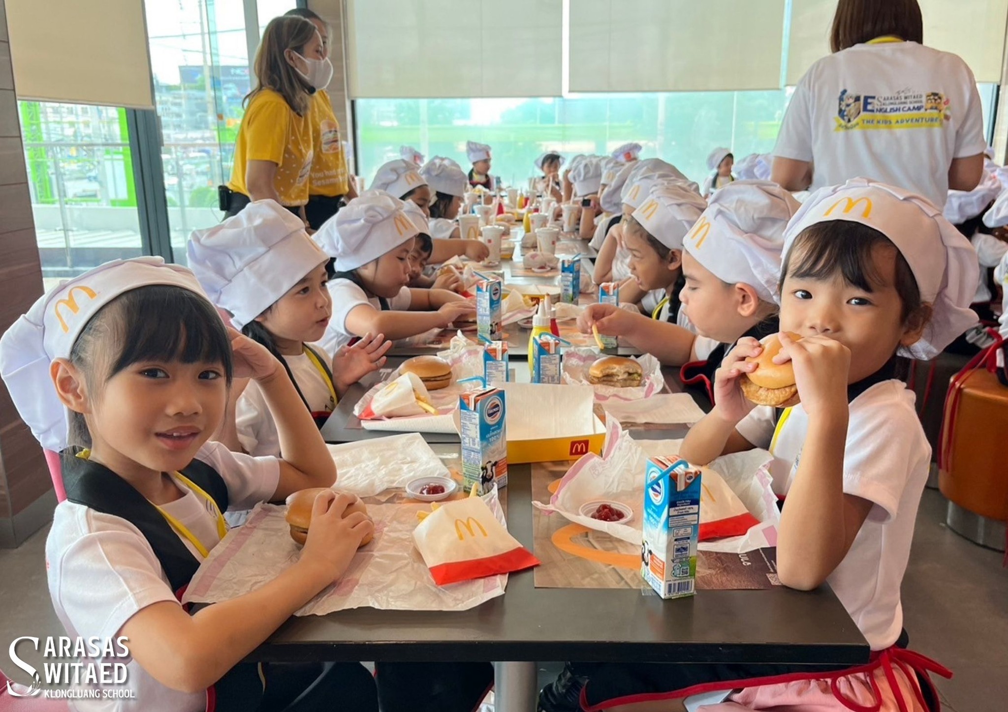 เปิดประสบการณ์ใหม่ให้กับน้องๆ ในระดับชั้นอนุบาล 2-3 ด้วยแคมป์ภาษาอังกฤษ “The Kid’s Adventure English Camp” ที่จัดขึ้นอย่างสร้างสรรค์และสนุกสนานในจังหวัดปทุมธานี เพื่อส่งเสริมการเรียนรู้ภาษาอังกฤษให้กับเด็กๆ ตั้งแต่อายุยังน้อย แคมป์นี้ไม่เพียงมุ่งเน้นให้เด็กๆ เรียนรู้ผ่านคำศัพท์และการสนทนาเท่านั้น แต่ยังเน้นการพัฒนาทักษะต่างๆ ที่จะทำให้พวกเขามีความมั่นใจในการใช้ภาษาอังกฤษในชีวิตประจำวัน แคมป์นี้ออกแบบกิจกรรมให้หลากหลายและเหมาะสมกับวัยของเด็กๆ โดยใช้วิธีการเรียนรู้ผ่านการทำกิจกรรมจริง ทำให้น้องๆ ได้รับความรู้พร้อมความสนุกสนาน เช่น กิจกรรมที่โดดเด่นอย่าง Workshop กับ McDonald’s ที่น้องๆ ได้เข้าไปเรียนรู้เบื้องหลังร้านอาหารฟาสต์ฟู้ดชื่อดัง ทั้งยังได้ฝึกฝนการใช้คำศัพท์ที่เกี่ยวข้องกับการสั่งอาหารและการบริการ ทำให้พวกเขาได้ฝึกการสื่อสารภาษาอังกฤษในสถานการณ์จริงไฮไลต์กิจกรรมในแคมป์นี้ประกอบด้วยConversation & Speaking: ส่งเสริมให้น้องๆ ได้ฝึกทักษะการพูดและสนทนาภาษาอังกฤษในสถานการณ์ต่างๆ โดยมีครูผู้เชี่ยวชาญคอยแนะนำอย่างใกล้ชิดVocabulary Building: เพิ่มคำศัพท์ให้กับเด็กๆ ผ่านเกมและกิจกรรมสร้างสรรค์ ทำให้การเรียนรู้คำศัพท์ใหม่ๆ เป็นเรื่องง่ายและสนุกสนานCreative Thinking: สร้างแรงบันดาลใจในการคิดอย่างสร้างสรรค์ ด้วยกิจกรรมที่ช่วยกระตุ้นจินตนาการและการแก้ปัญหาConfidence in English: สร้างความมั่นใจให้กับเด็กๆ ในการพูดและฟังภาษาอังกฤษ ผ่านการฝึกฝนที่เหมาะสมและเป็นกันเองThe Kid’s Adventure English Camp นี้ไม่เพียงแต่ช่วยให้เด็กๆ มีความสามารถในภาษาอังกฤษเพิ่มขึ้น แต่ยังช่วยพัฒนาทักษะความคิดสร้างสรรค์ ความมั่นใจ และการสื่อสารกับผู้อื่น ซึ่งจะเป็นประโยชน์ในการเตรียมความพร้อมสู่อนาคตที่เต็มไปด้วยโอกาส นี่คือก้าวแรกสู่การเรียนรู้ภาษาอังกฤษของเหล่าอัศวินน้อยที่พร้อมจะเผชิญโลกกว้างอย่างมั่นใจ