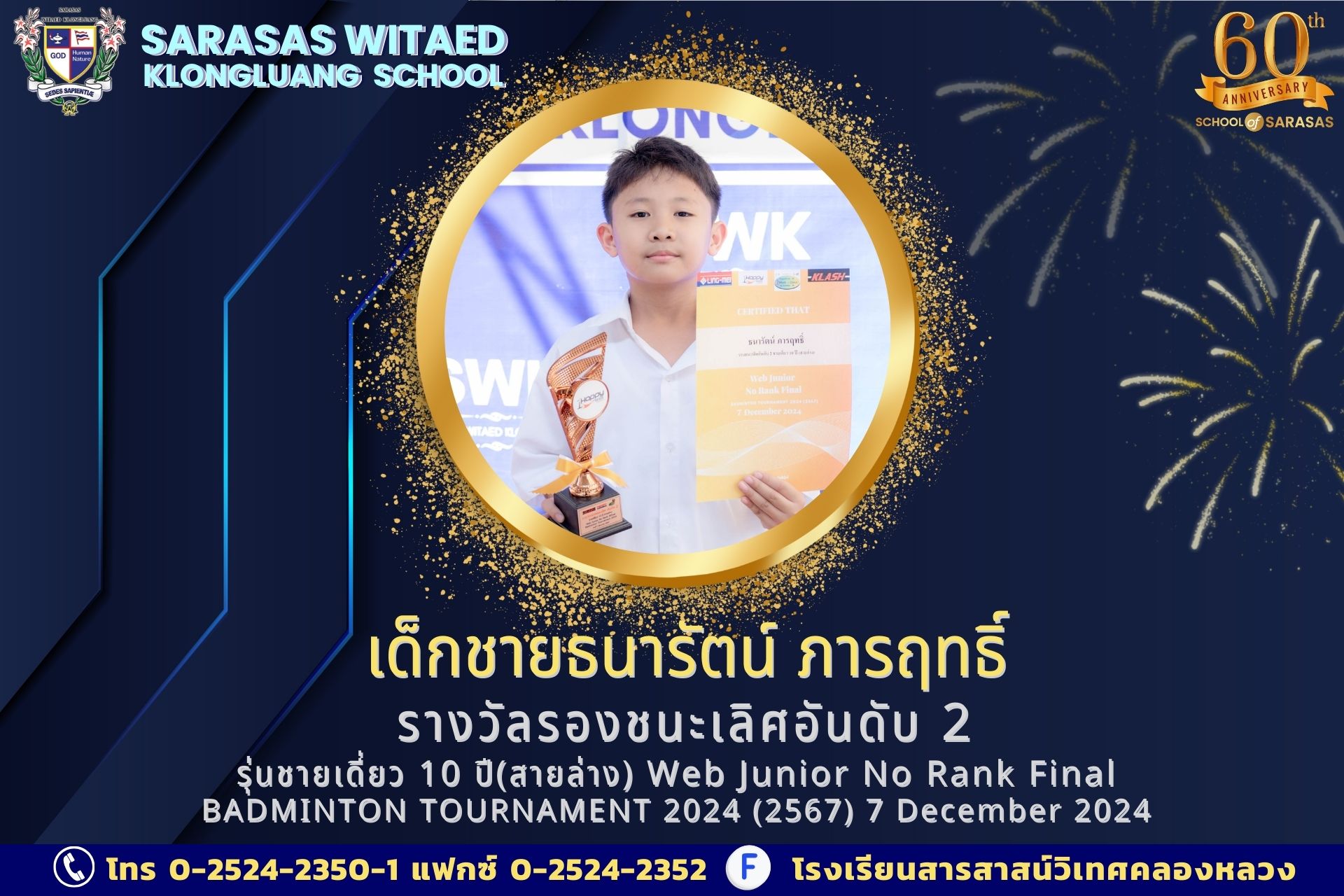 โรงเรียนสารสาสน์วิเทศคลองหลวง ขอแสดงความยินดีกับเด็กชาย...