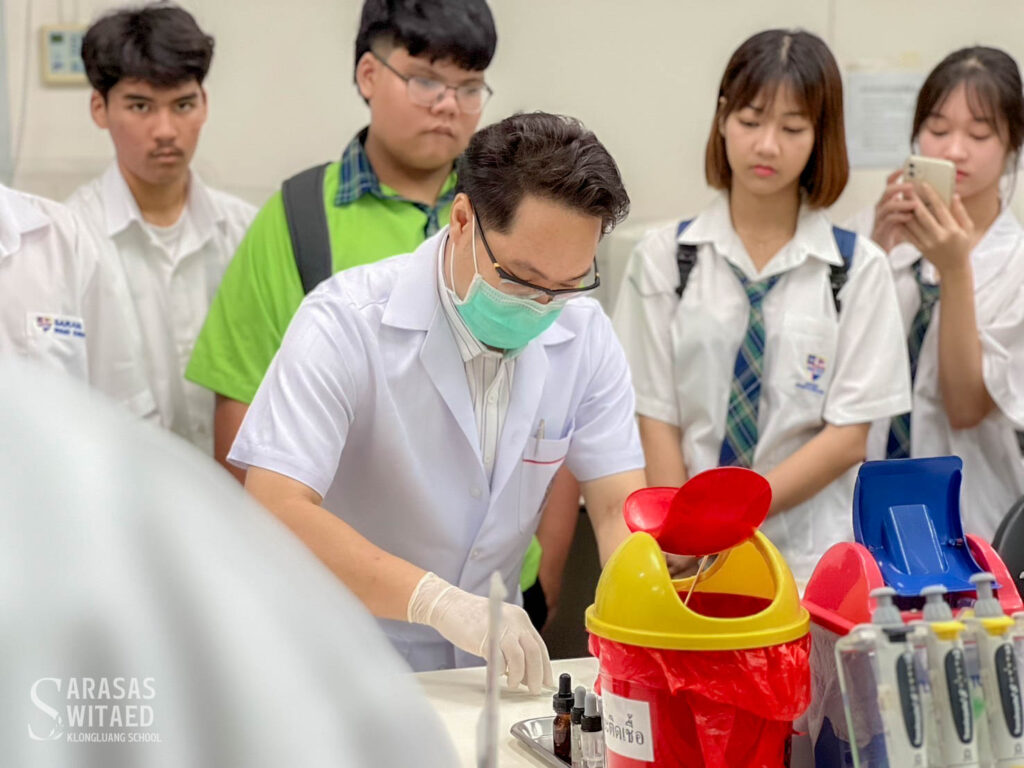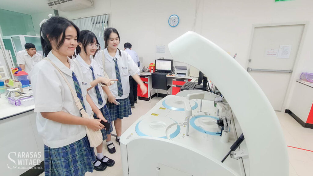 นักเรียนได้เยี่ยมชมห้องปฏิบัติการคลินิกเทคนิคการแพทย์ที่มีอุปกรณ์และเครื่องมือที่ทันสมัย และได้รับการบรรยายจากอาจารย์ผู้เชี่ยวชาญเกี่ยวกับการใช้งานเครื่องมือต่างๆ เช่น เครื่องตรวจเลือด เครื่องตรวจปัสสาวะ และเครื่องมือวิเคราะห์ทางชีวเคมี นอกจากนี้ นักเรียนยังได้เห็นกระบวนการทดสอบและวิเคราะห์ตัวอย่างต่างๆ ซึ่งทำให้เข้าใจถึงความสำคัญของความแม่นยำและความละเอียดในการทำงานของนักเทคนิคการแพทย์
